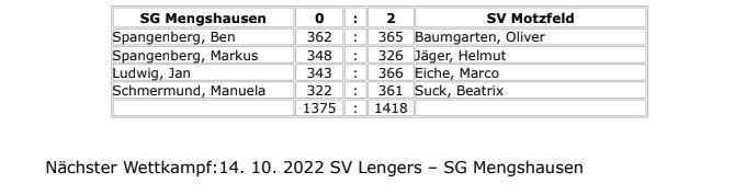 Nächster Wettkampf: 18. 10. 2022 SG Mengshausen – SV Niederaula