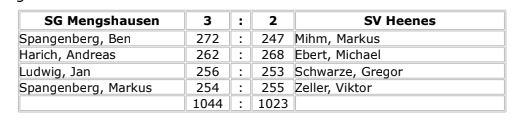 gegen die Mannschaft des SV Heenes erfolgreich. 3 : 2 lautete das Endergebnis wobei