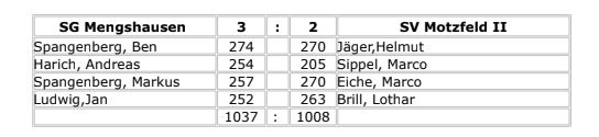 Wettkampftag gegen die Mannschaft SV Motzfeld II durchsetzen und gewinnen. 3 : 2
