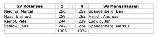 Mannschaft des SV Rotensee setzte man sich 4 : 1 durch. Durch die Punkte in den Einzeln von