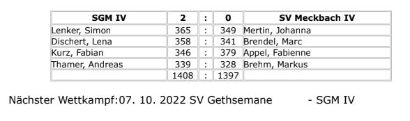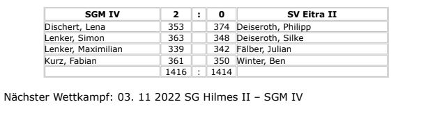 Nächster Wettkampf:11. 11. 2022 SGM IV – SV Willinghain II