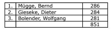 Mannschaftsergebnis aller gestarteten Teams.